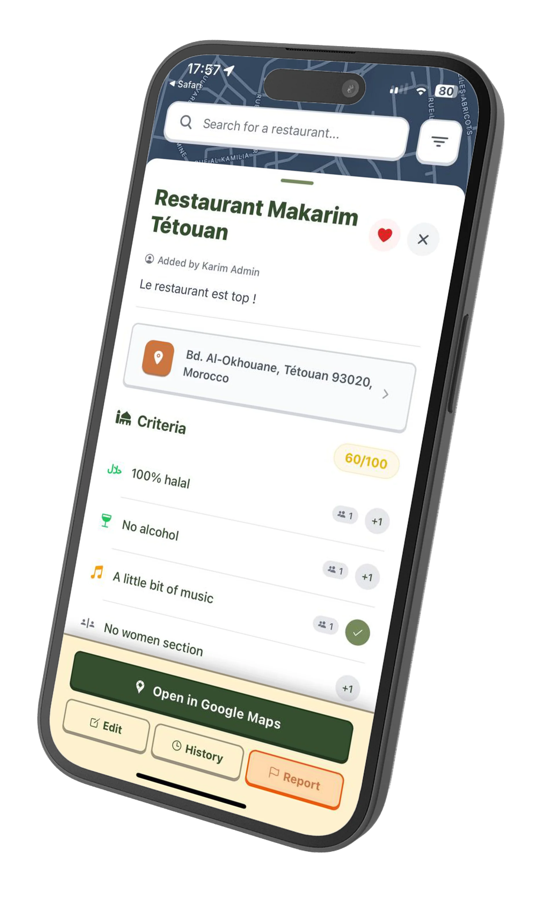 Découvrez des restaurants halal, sans musique, sans alcool... autour de vous